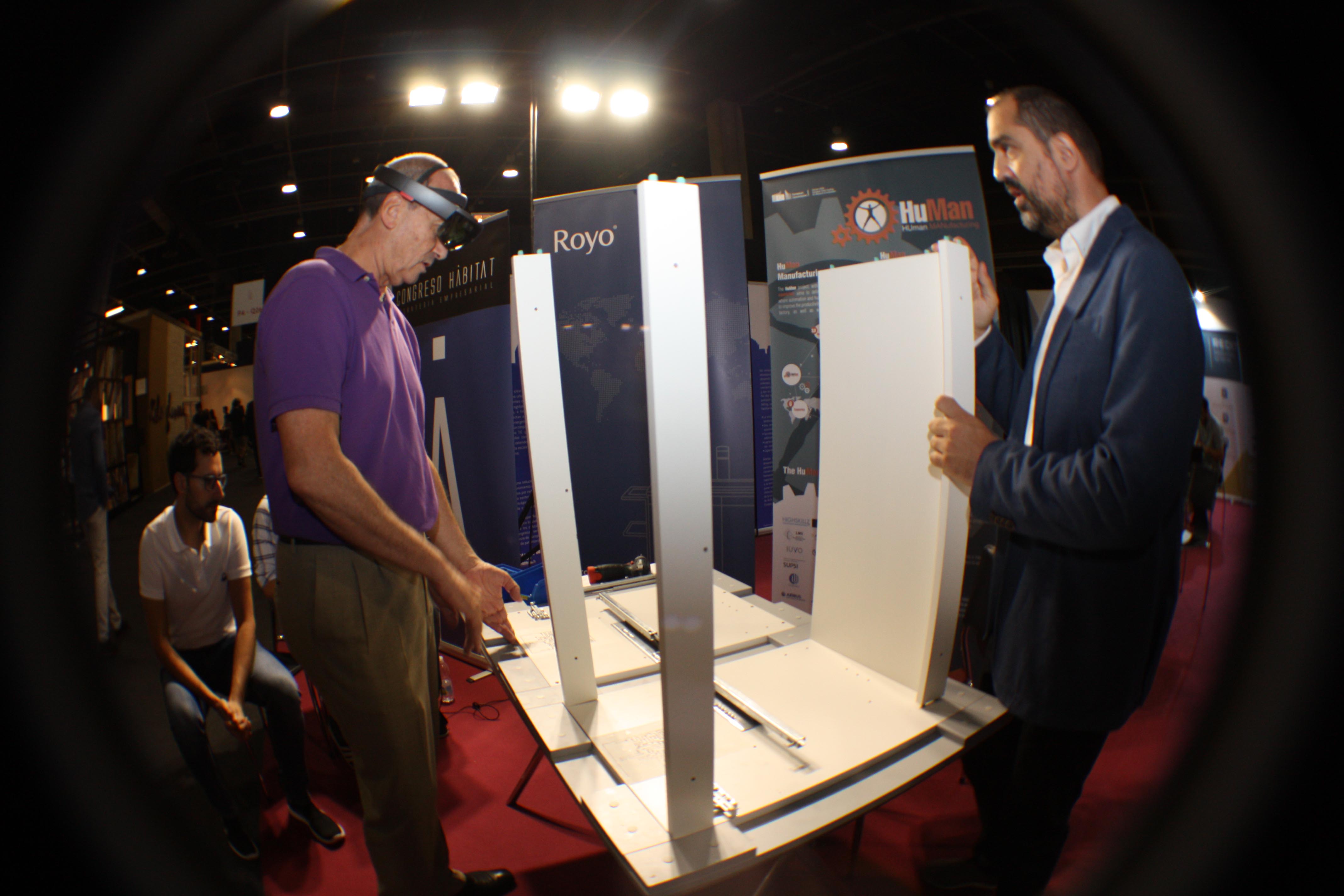 Precisamente, este proyecto europeo congregó a un nutrido grupo de profesionales interesados en conocer cómo funciona el sistema de formación que consistió en el montaje de un mueble de Royo guiado mediante las gafas de realidad aumentada Microsoft HoloLens, que indica paso a paso al operario el proceso de montaje.