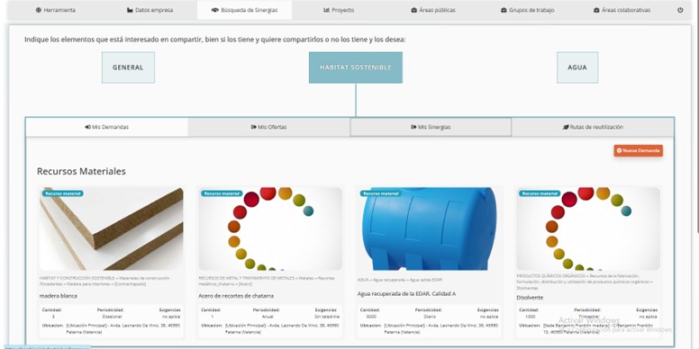 Por otro lado, se ha trabajado en la definición de rutas de reutilización de materiales, difundiendo posibles usos y aspectos que deben tenerse en cuenta, promocionando iniciativas para que las empresas pongan a disposición de otras empresas y entidades de recursos subutilizados y que estos se aprovechen con la máxima eficiencia.