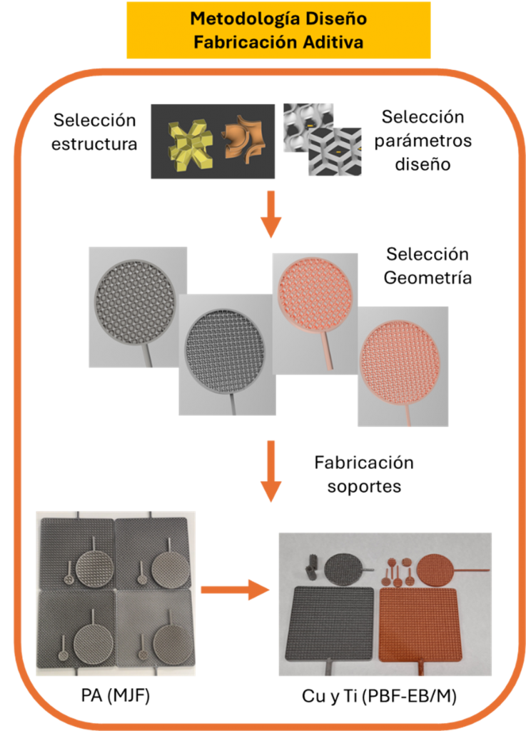 El diseño y la fabricación de los electrodos porosos se ha enfocado a potenciar sus propiedades estructurales para la transferencia de masa, transporte iónico y conducción electrónica. La porosidad puede ser controlada mediante fabricación aditiva (AM) ya que permite diseñar y fabricar arquitecturas porosas con control geométrico preciso a escala meso-macro generando soportes robustos, precisos y específicos para cada aplicación.