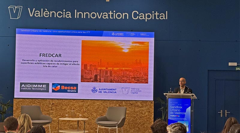 AIDIMME mostró en el Sandbox Urbano el sistema disipador de calor con “asfalto frío” del Grupo Simetría que se probará en Valencia